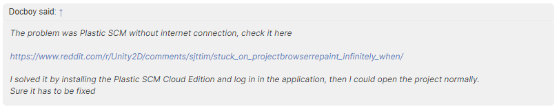 오랜만에 접속하면서 기존에 로그인이 풀렸나 보다. 그러면서 경로를 찾지를 못해 Unity가 무한 로딩을 시작한 것 같았다.