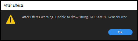 에프터이펙트를 사용하다가 폰트를 변경하려고 하는데 아래와 같은 경고 창이 떴다면