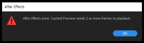 우선 이 에러는 작업할려고 보는 컴포지션에서 모션 그래픽을 작업하거나 스페이스바를 눌러 영상을 재생하거나 사운드를 재생할때 적어도 2개이상의 프레임수가 필요한데 그것을 충족시켜주지 못해 뜬 에러입니다.