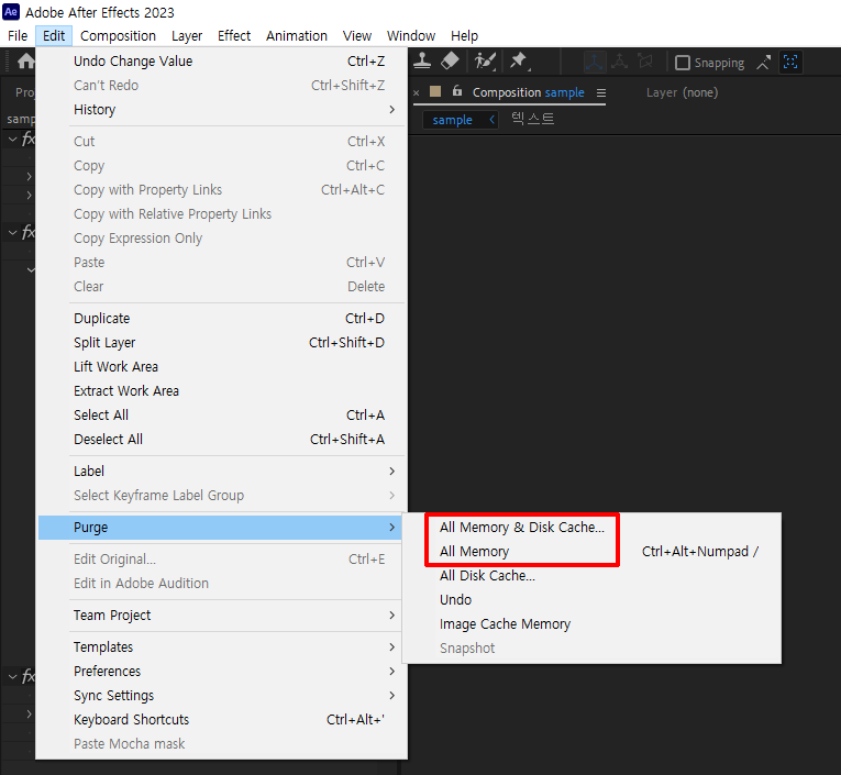 Edit → purge → All Memory 눌러보시면